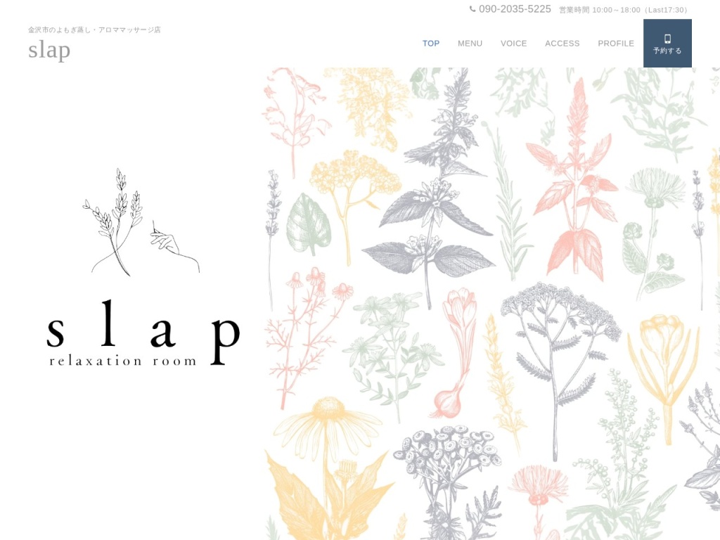 | relaxation room slap | 地元産オーガニックよもぎ使用、完全個室 | 5,000円〜 | 石川県金沢市中村町20−4 |